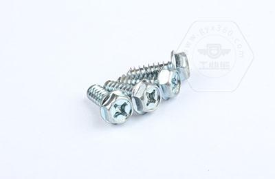 8.8級鍍藍(lán)白鋅 十字槽凹穴帶墊外六角自攻平尾螺釘 十字槽凹穴帶墊三組合螺絲的產(chǎn)品圖片