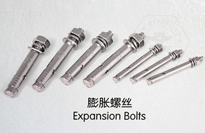 碳鋼膨脹螺栓的性能等級分為4.8、8.8、9.8、10.9、12.9等,常用材料:Q215、Q235、25和45號鋼,對于高等級高強度的膨脹螺栓可選用15Cr、20Cr、40Cr、15MnVB,、30CrMrSi等機械性能較高的合金鋼。