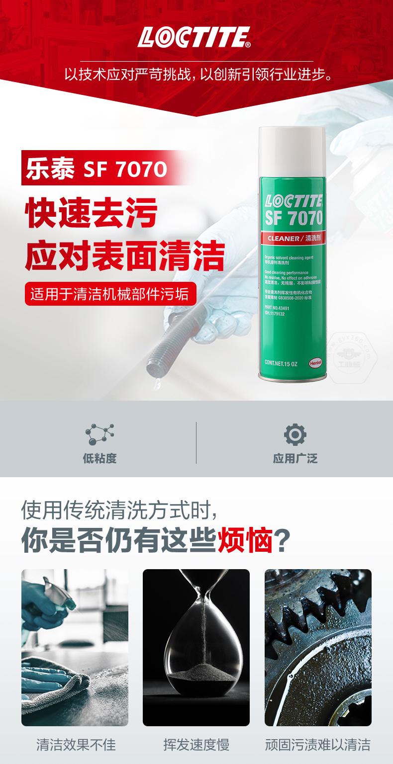 樂泰SF7070是一款溶劑型清洗劑。樂泰SF7070主打快速去污,適用于表面清潔和機(jī)械部件污垢清洗。樂泰SF7070無色透明,化學(xué)類型為碳?xì)浠衔铮?0℃下干燥時間為5-20分鐘,粘度非常低。樂泰SF7070具備快速揮發(fā)、應(yīng)用廣泛、強(qiáng)效清潔等特點(diǎn),可用于裝配前的最終清潔處理。樂泰SF7070還與金屬、多種塑料和彈性體兼容。