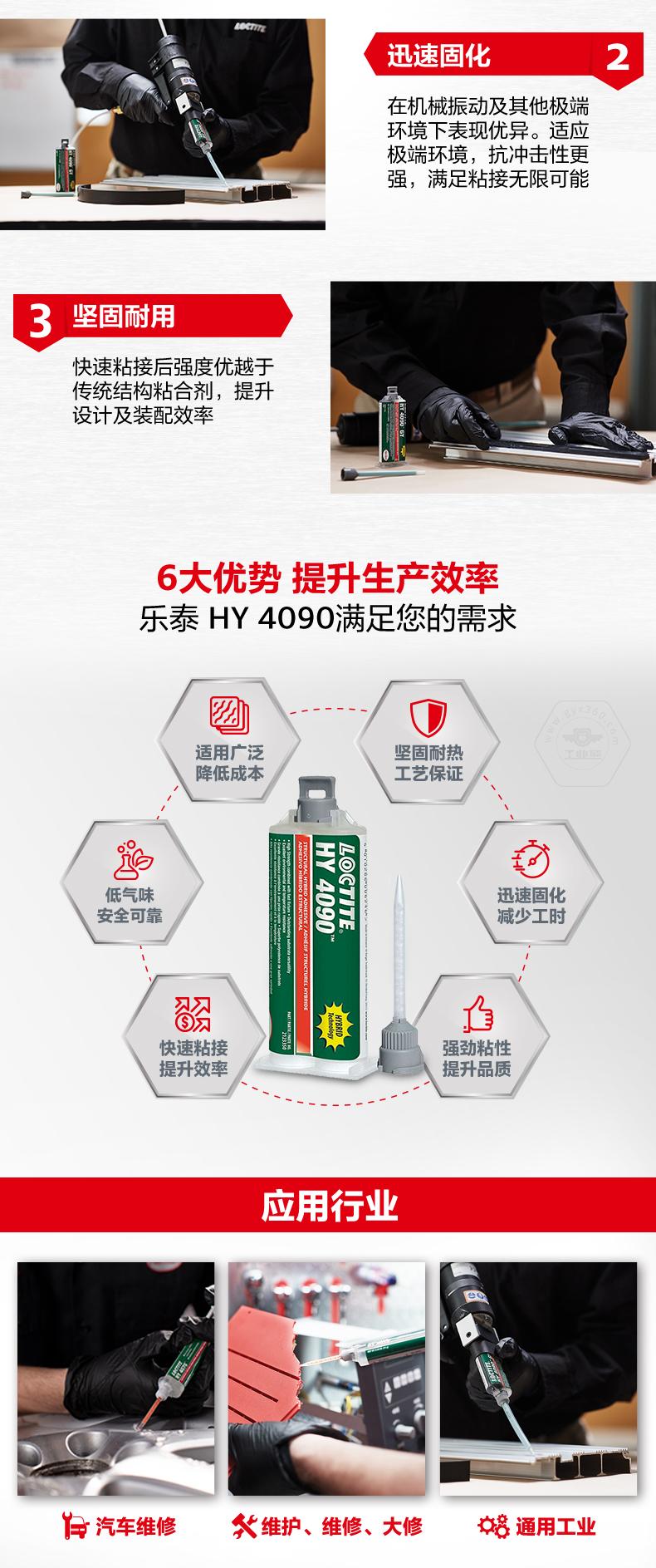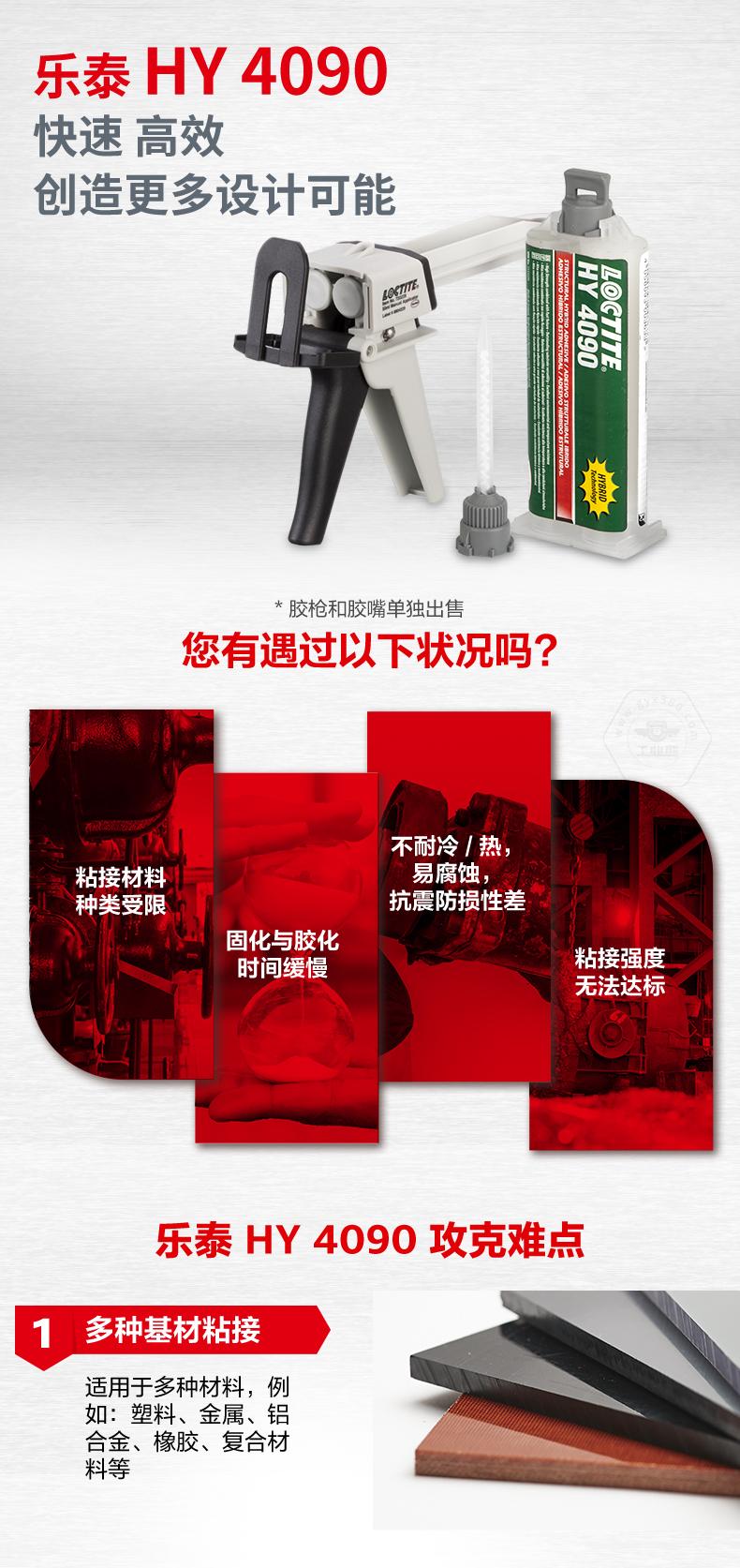 樂泰HY4090主打迅速固化、強(qiáng)勁粘性和多種基材粘接。樂泰HY4090適用于塑料、金屬、鋁合金、橡膠及復(fù)合材料,兼顧低氣味、安全可靠。樂泰HY4090在機(jī)械振動及其他極端環(huán)境下表現(xiàn)優(yōu)異,快速粘接后強(qiáng)度優(yōu)于傳統(tǒng)結(jié)構(gòu)粘合劑,可提升設(shè)計與裝配效率,適用于汽車維修、維護(hù)維修大修和通用工業(yè)。